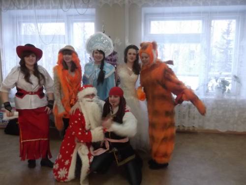 Атаманша, лиса, снегурочка, принцесса, кот , Дед Мороз и Джек в детской больнице.